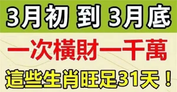 一次橫財一千萬,這些生肖三月初到三月底,旺足31天有你嘛