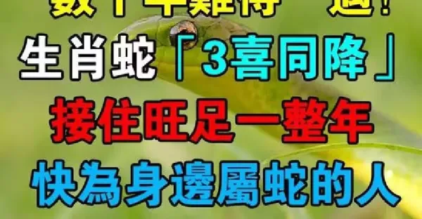 數十年難得一遇!生肖蛇「3喜同降」接住旺足一整年 快為身邊屬蛇的人接囍!