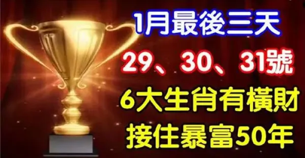 1月29、30、31號橫財大發,逢獎必中,富貴難逃的六生肖