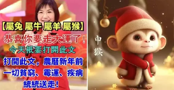 【屬兔 屬牛 屬羊 屬猴】恭喜你要走大運了!!打開此文 農曆新年前一切貧窮、霉運、疾病統統送走