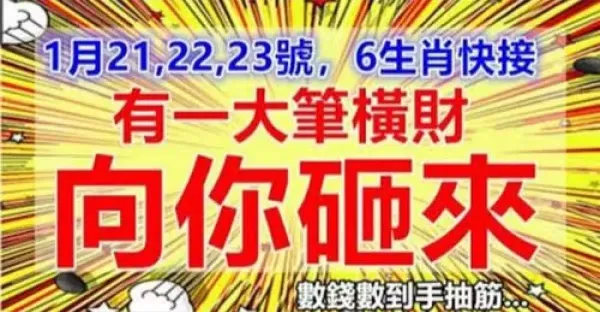 1月21,22,23號有一大筆橫財向你砸來,六生肖請接