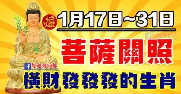 菩薩關照,從1月17號~31號好運降臨,腳踩聚寶盆,橫財發發發的生肖