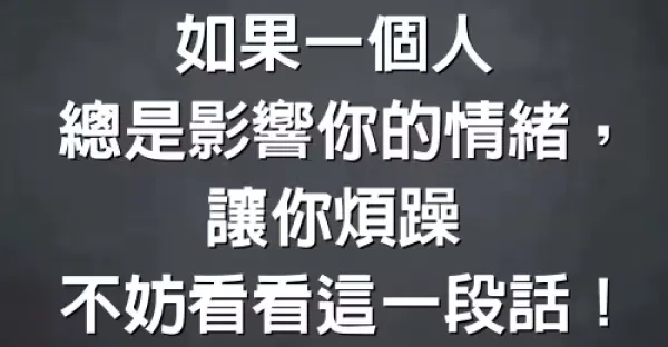 如果一個人總是影響你的情緒,讓你煩躁,不妨看看這一段話!!