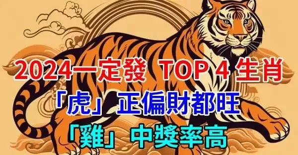 2024一定發TOP4生肖!「虎」正偏財都旺、「雞」中獎率高