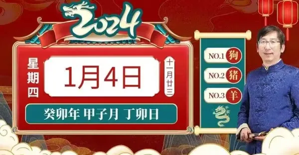 1月4日十二生肖【每日老黃歷】紅榜生肖:狗 豬 羊 需要注意:龍 鼠 雞