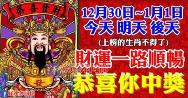 12月30日~1月1日:財運一路順暢,總有福星臨門的生肖