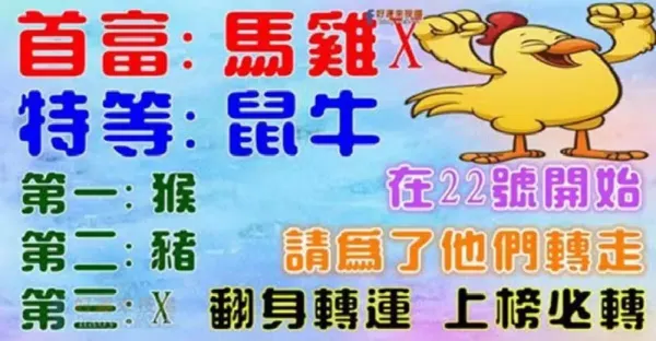 (生肖馬,雞,X)在22號請為他們轉走,有望翻身轉運