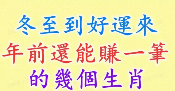 冬至到好運來!年前還能賺一筆的幾個生肖