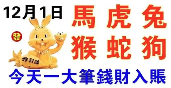 12月1號開門紅,一路大發橫財到元旦的六生肖