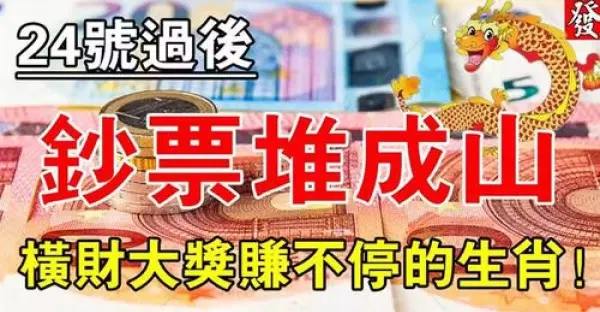 鈔票堆成山,11月24號過後橫財大獎賺不停的生肖