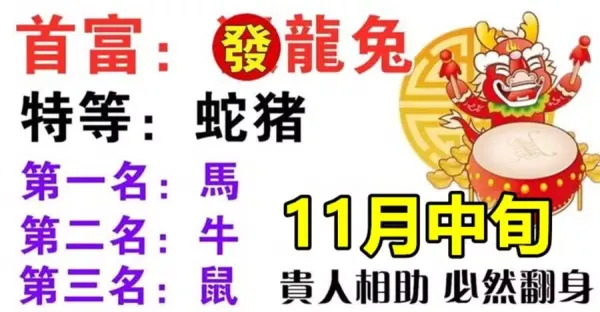 11月20號偏財大旺,六個生肖請接財!錯過再等一年!