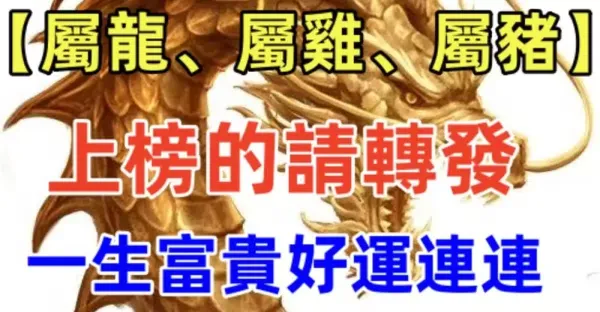 【屬龍、屬雞、屬豬】上榜了!有你嗎?替你身邊的人轉發!