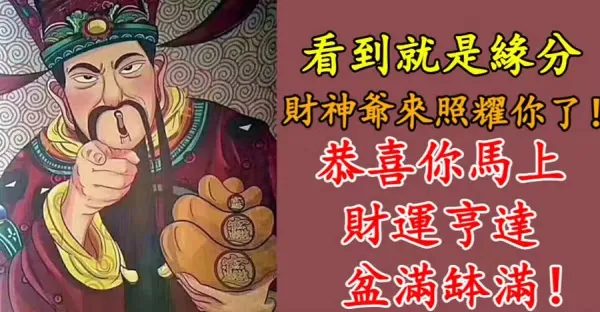 看到就是緣分,財神爺來照耀你了!恭喜你馬上財運亨達盆滿缽滿!