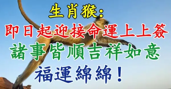 生肖猴:即日起迎接命運上上簽,諸事皆順吉祥如意,福運綿綿!