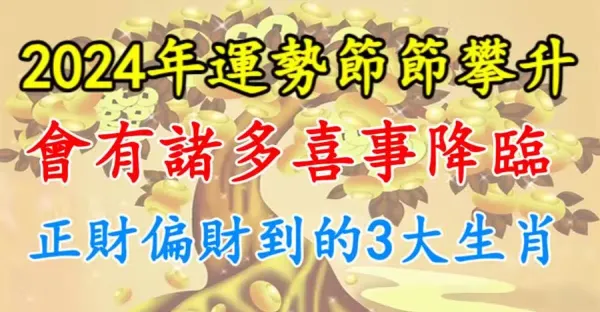 2024年運勢節節攀升,會有諸多喜事降臨,正財偏財到的3大生肖