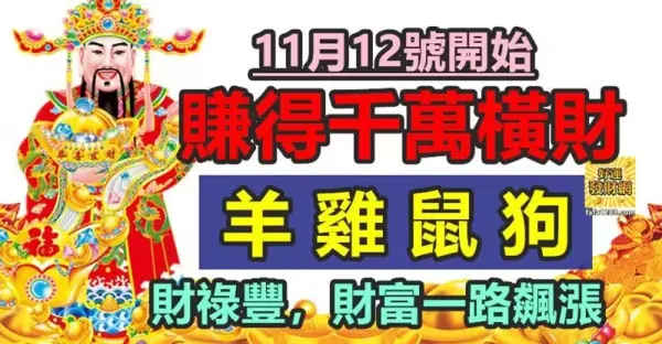 11月12號開始賺得千萬橫財,財祿豐盈的四生肖,財富一路飆漲