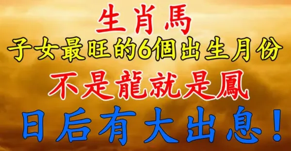 生肖馬:子女最旺的6個出生月份,不是龍就是鳳,日後有大出息!