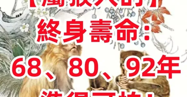 屬猴人的終身壽命: 1968、1980、1992年, 準得可怕!!