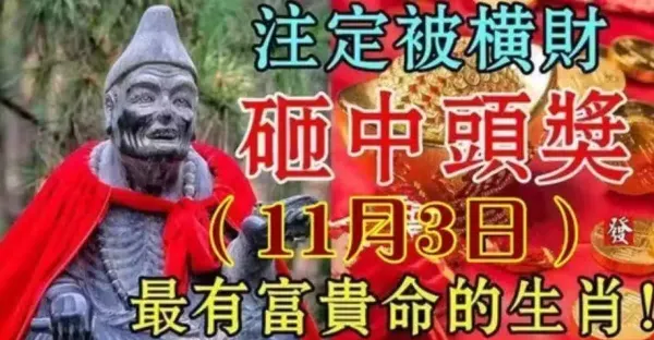 11月3日開始註定被橫財(砸中頭獎)最有富貴命的生肖