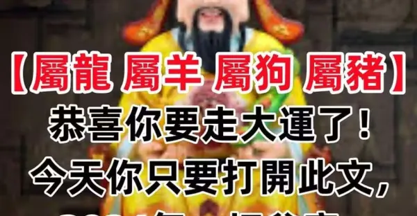 生肖【屬龍 屬羊 屬狗 屬豬】恭喜你要走大運了!今天你只要打開此文,2024年一切貧窮、霉運、疾病統統送走!