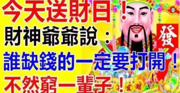 今天送財日!財神爺爺說:誰缺錢的一定要打開!我打開了,你呢?靈驗!