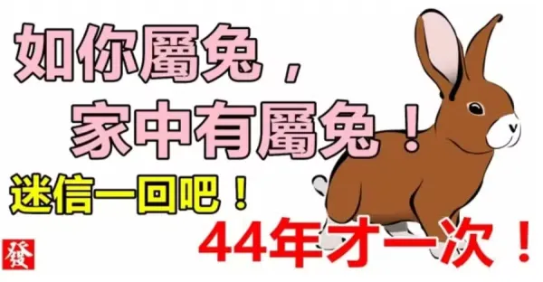 如果你不屬兔,你最愛的人屬兔,或家中有屬兔,44年才一次!迷信一回吧‼️