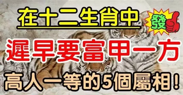 十二生肖中遲早要富甲一方,高人一等的五個屬相