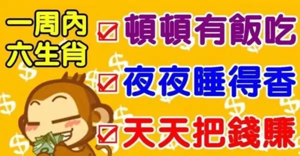 一周內財運到,吃香喝辣,天天把錢賺的六生肖