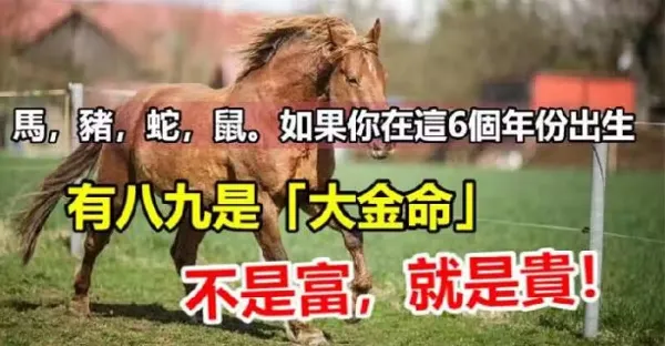 生肖 馬,豬,蛇,鼠!如果你在「這6個年份」出生 十有八九是「大金命」不是富就是貴