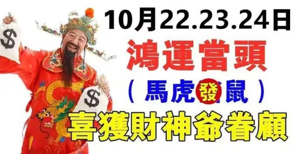 10月22.23.24日鴻運當頭,喜獲財神眷顧的生肖