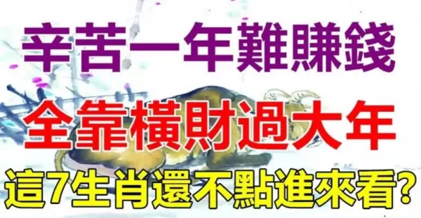 辛苦一年難賺錢,全靠橫財過大年,這七生肖說的就是你
