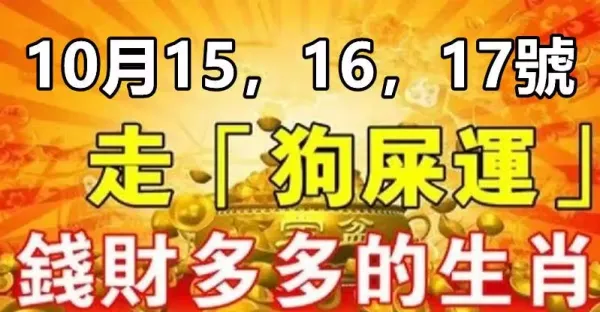 10月15,16,17號走狗屎運,錢財多多的生肖