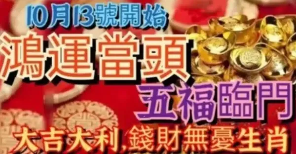 10月13號開始,鴻運當頭,五福臨門,大吉大利,錢財無憂的生肖有你嘛
