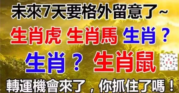 未來七天要格外留意了,這些生肖轉運機會來了~