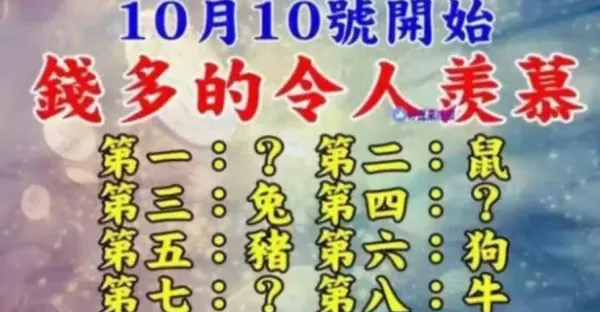10月10號開始,錢袋滿滿,一發不可收拾的生肖
