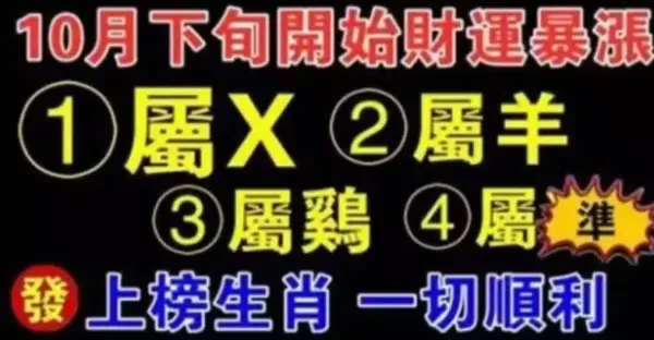 十月下旬開始,財運暴漲,大富特富的生肖