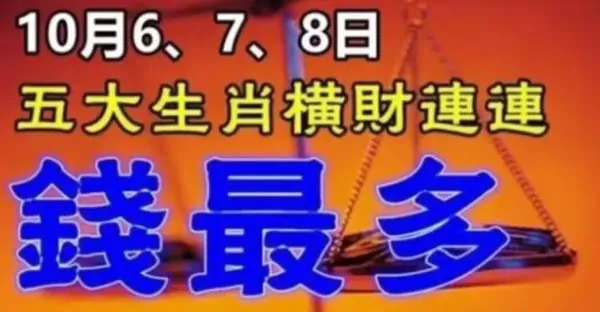 10月6、7、8日橫財連連,五大生肖錢最多