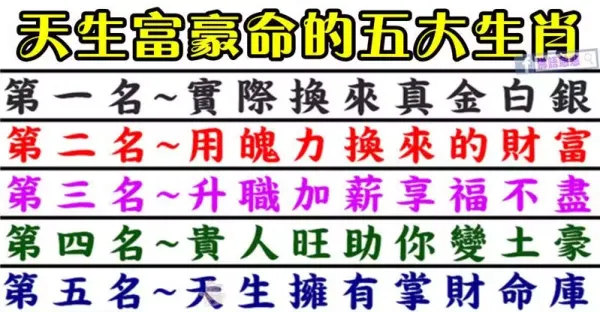 這些生肖是、富人命、前途無量、大富大貴!!!