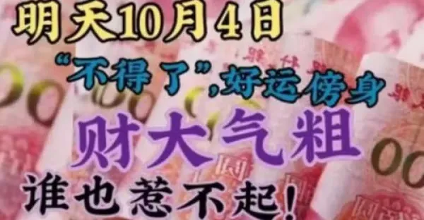 明天10月4日「不得了」,好運傍身,財大氣粗,誰也惹不起的生肖!