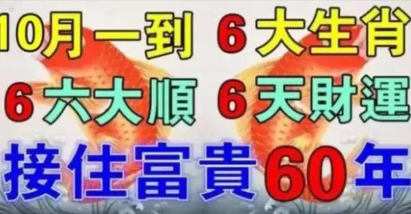 10月一到66大順,6天財運,接住富貴60年的6大生肖