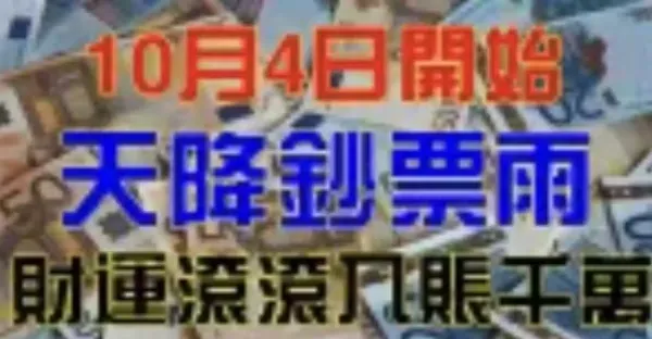 10月4日開始天降鈔票雨,財運滾滾入帳千萬的生肖!!!