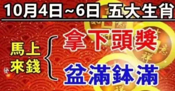 10月4日~6日馬上來錢,五大生肖拿下頭獎,盆滿缽滿有你嘛