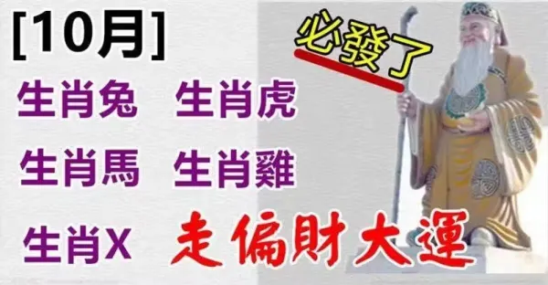 財神爺說了:10月初有頭獎運的生肖,你家有幾個呢!!!