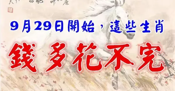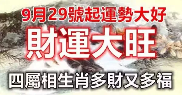 9月29號起運勢大好,財運大旺,四屬相生肖多財又多福