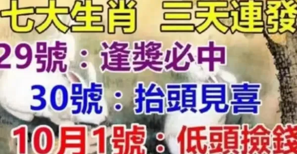 七大生肖三天連發:9月29號逢獎必中,30號抬頭見喜,10月1號低頭撿錢