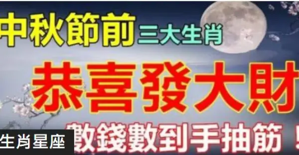 中秋節前恭喜發大財,三大生肖數錢數到手抽筋!!!