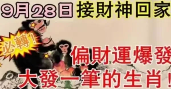 9月28,29,30號財神駕到,橫財大發特發的生肖