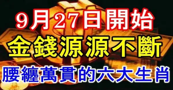 9月27日開始金錢源源不斷,腰纏萬貫的六大生肖