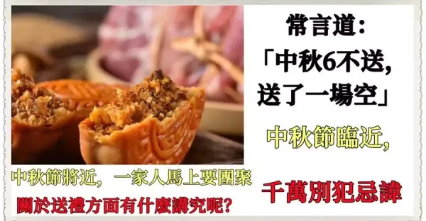 常言道:「中秋6不送,送了一場空」,中秋節臨近,千萬別犯忌諱!