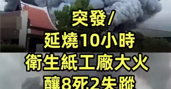 突發/ 延燒10小時 衛生紙工廠大火, 釀8死2失蹤 罹難者多位於辦公區!
